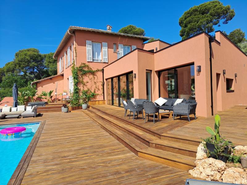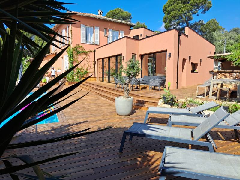 Le défi consistait à ajouter 125 m² de pièce de vie supplémentaires (cuisine, salon, salle à manger, salon TV, buanderie et atelier) à cette magnifique maison de Maître du 19 ème siècle sur les hauteurs de Nice (Alpes Maritimes) sans la dénaturée.
