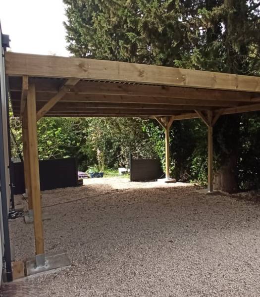 Adossé à une villa PopUp House by Bekowood que nous avions construite à Mougins près de Cannes dans les Alpes Maritimes quelques années auparavant, nous avons réalisé un carport pour abriter 2 voitures.