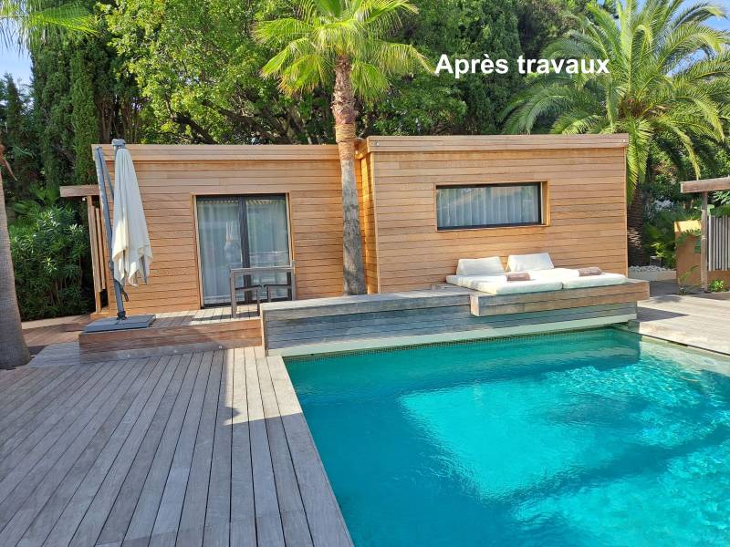 Dans le cadre d'une rénovation de l'hôtel Villa Cosy à Saint Tropez dans le Var, Bekowood est intervenu pour remplacer le studio de jardin vieillissant par une structure à ossature bois neuve pour y créer une suite VIP.